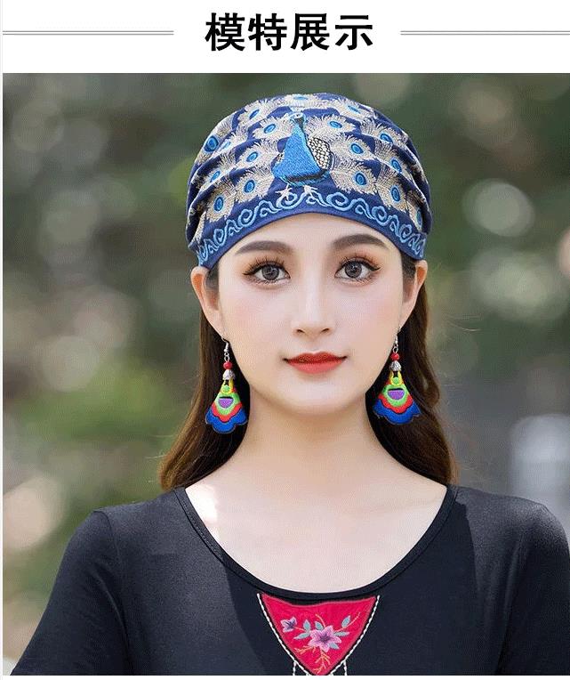 5分鐘前繡花頭巾頭箍刺繡發帽鬆緊發帶發飾孔雀套頭帽 天然棉麻材質,親膚透氣,不悶汗不壓抑,後面開口設計,紮馬尾也可方便佩戴 - 【尊享三入】3件僅售NT$1299,均價433/件
