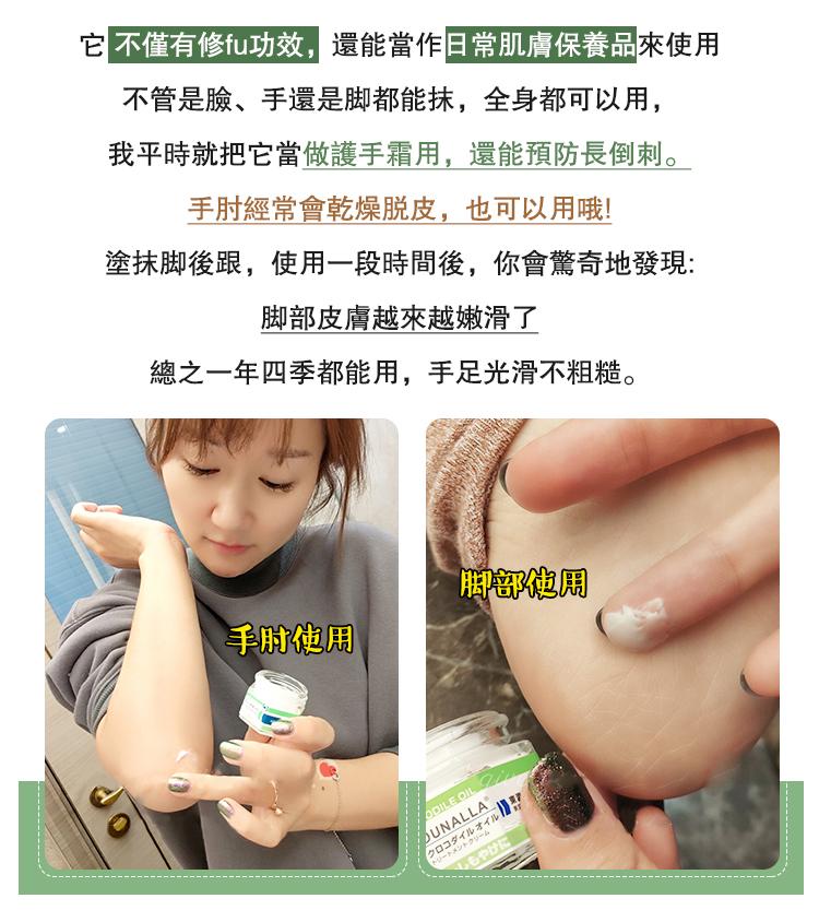 25分鐘前【秋冬保濕套裝】日本DUNALLA鱷魚油滋潤護理霜 修復手足 防乾裂 解決皮膚乾燥粗糙 幹癢隱痛的問題 讓肌膚滋潤保濕 清爽不油 - 【加200塊】6組手膜+6組腳膜+2組DUNALLA鱷魚油 僅需--NT$ 1198
